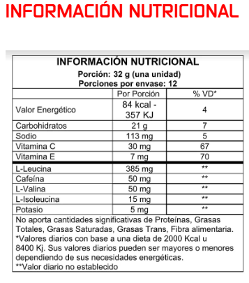- Aminoácidos BCAA (valina, leucina e isoleucina): contribuyen a la protección muscular y ayudan en la generación de energía y prevención de la fatiga.